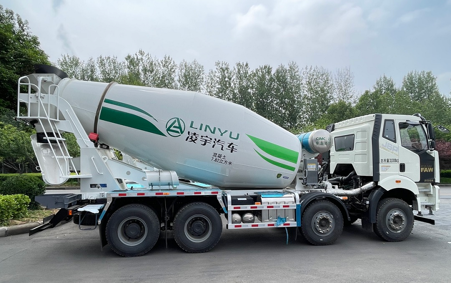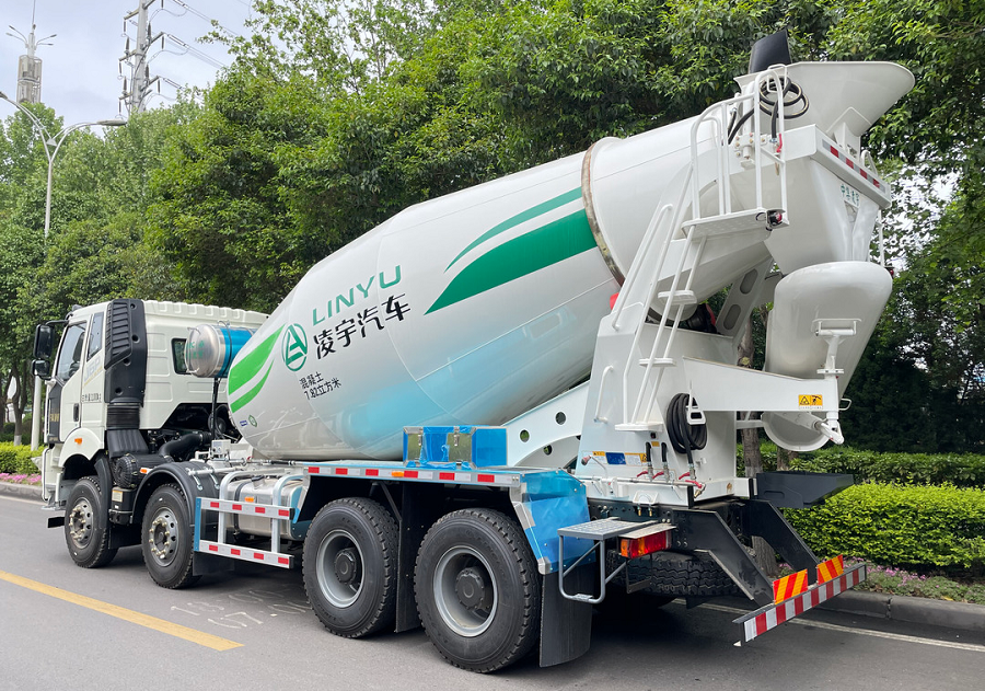 解放&凌宇一體化攪拌車,罐體及進出料系統使用了高強度耐磨鋼材,罐體使用壽命延長30%,產品較同行產品減重10%以上。